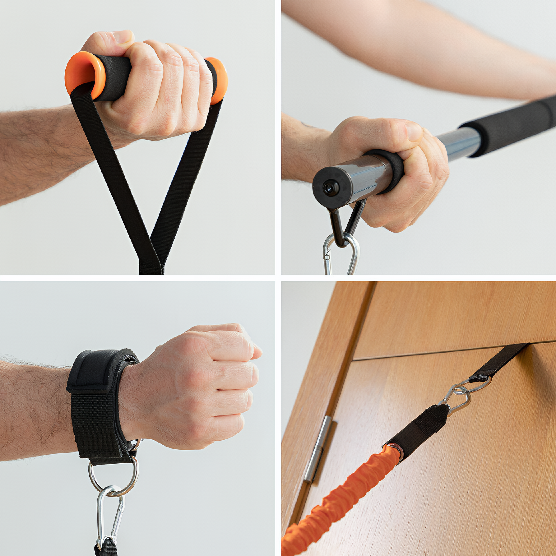 ✔ 4 bandas elásticas de resistencia (hasta 70 kg)